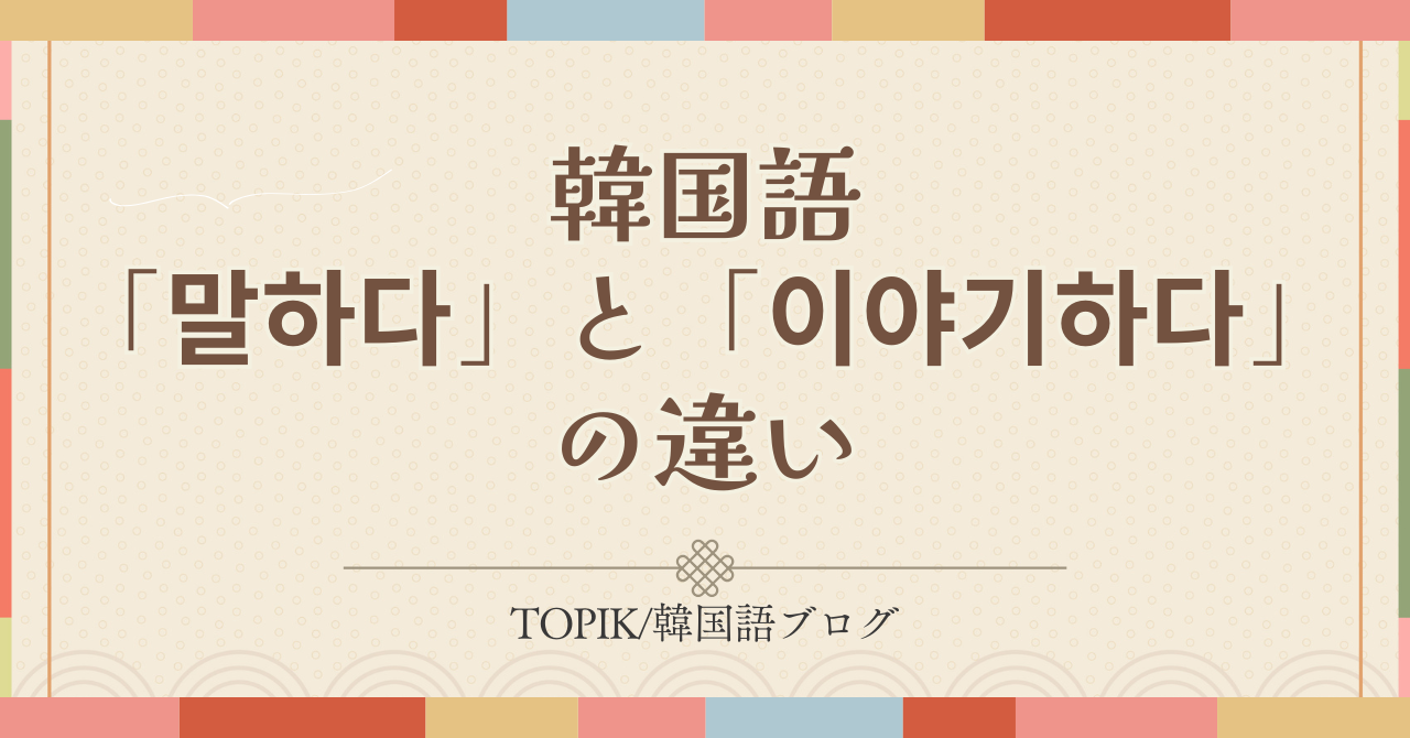 韓国語の会話でよく登場する「말하다(話す)」と「이야기하다(話をする)」は、日本語ではどちらも「話す」と訳されますが、使い分けには微妙な違いがあります。特に日常会話やTOPIK対策ではニュアンスを正しく理解しておくことが大切です。本記事では、「말하다」と「이야기하다」の意味の違い、使い分けのポイント、カタカナと例文つきでまとめて徹底解説します。
