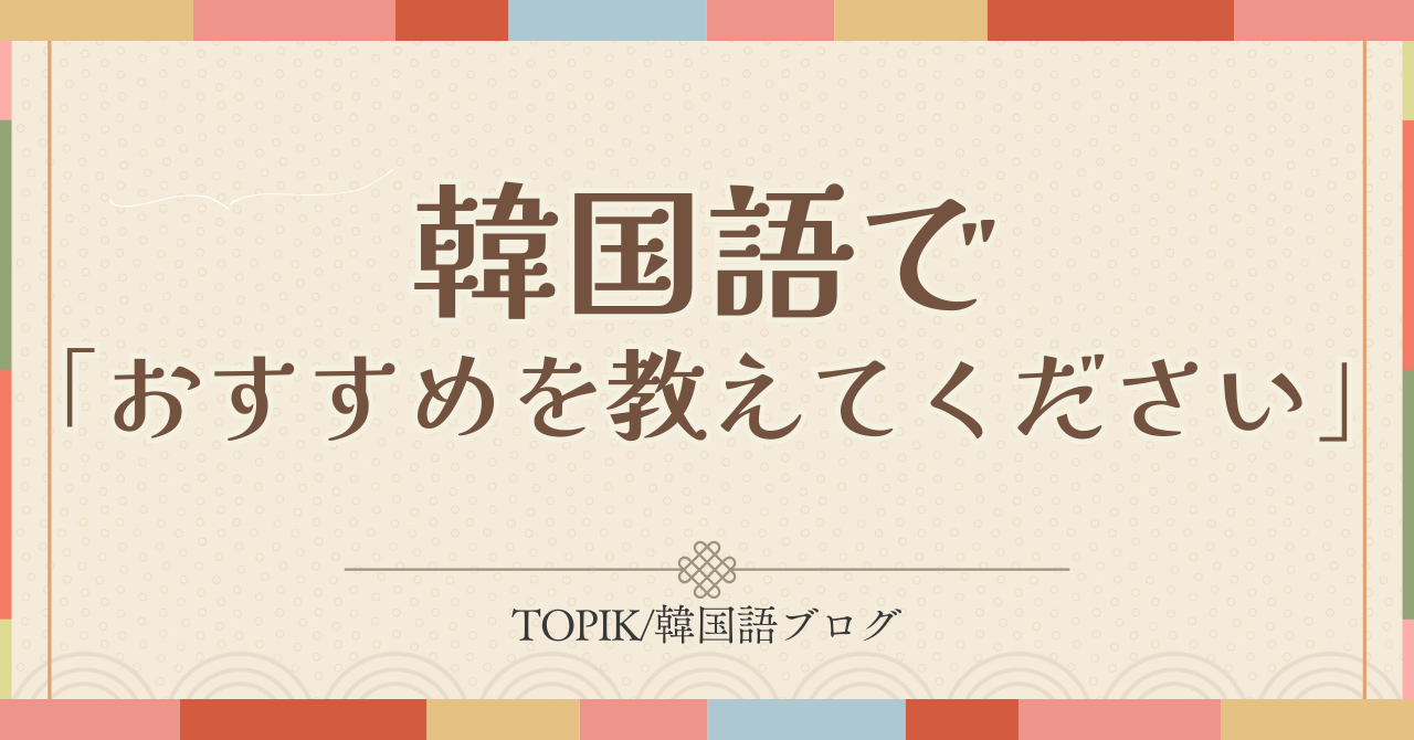 韓国語では 추천해 주세요チュチョネ ジュセヨ を中心に覚えておくと安心です。