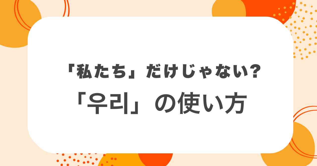本記事では、韓国語「우리(ウリ)」の本来の意味と、「私」「うち」「みんな」などへの幅広い使い方を例文つきでわかりやすく解説します。