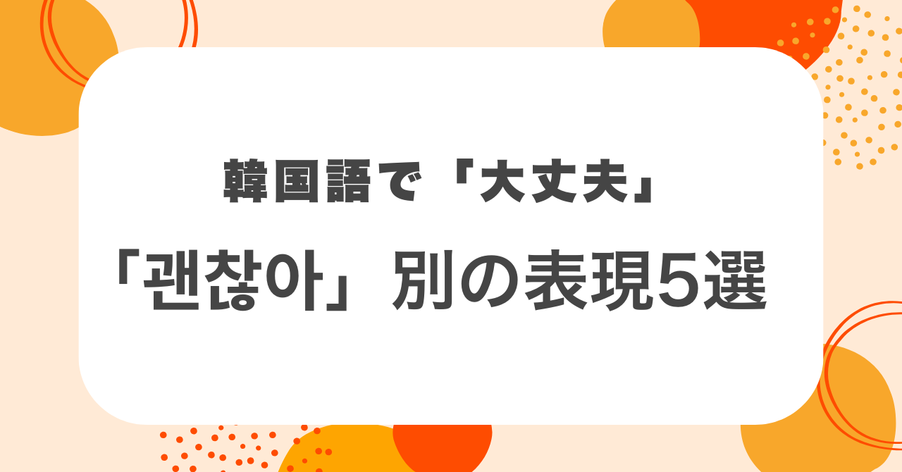 ここでは「괜찮아」以外の「大丈夫」を表す表現をまとめて紹介します。