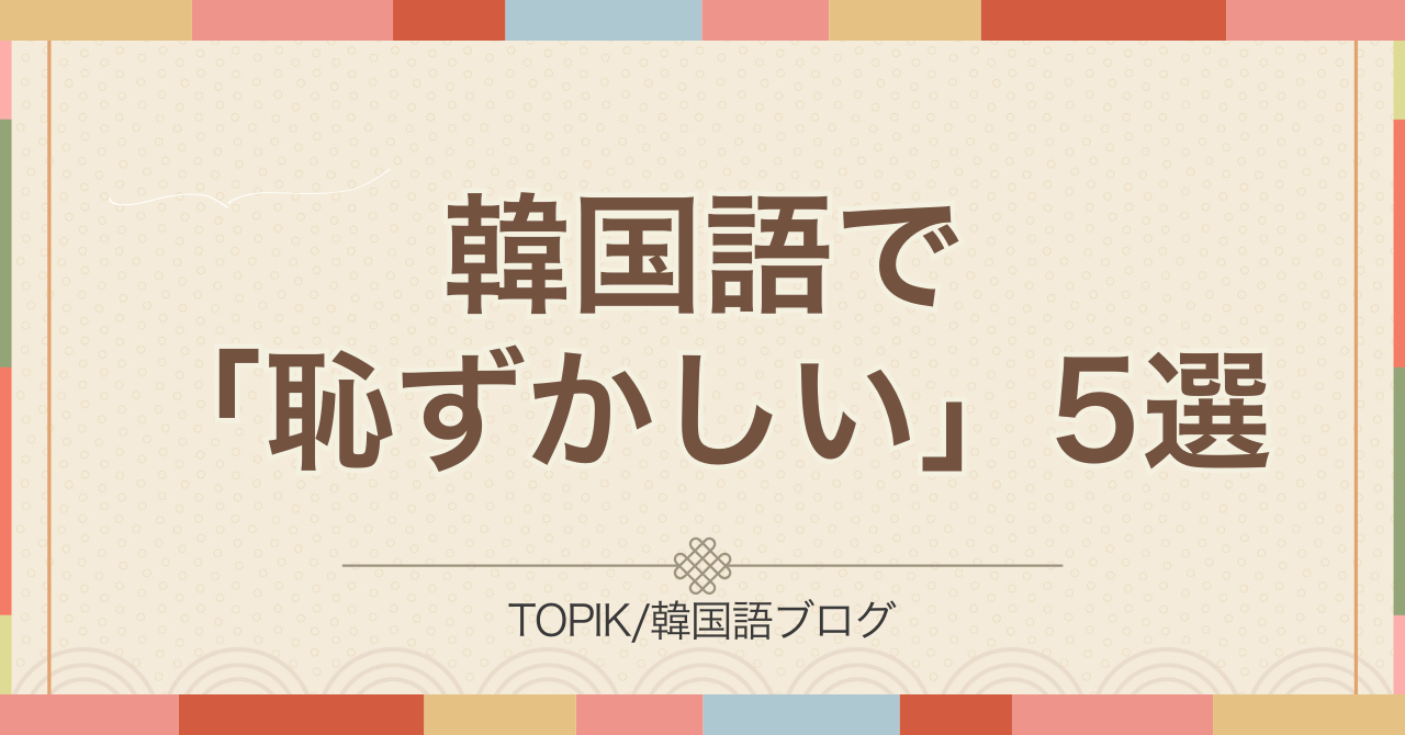 本記事では、韓国語で「恥ずかしい」を表す代表的な5つの表現(부끄럽다・창피하다・쑥스럽다・민망하다・쪽팔리다)の違いと使い分けを、カタカナと例文つきでわかりやすく解説します。