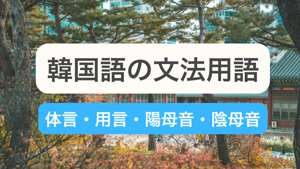 この記事は、韓国語の文法用語(体言・用言・陽母音・陰母音)をやさしく理解したい方に向けて書かれています。韓国語の文法を勉強していると、「体言」「用言」「陽母音」「陰母音」といった専門用語がよく出てきます。これらは難しそうに見えますが、文... -