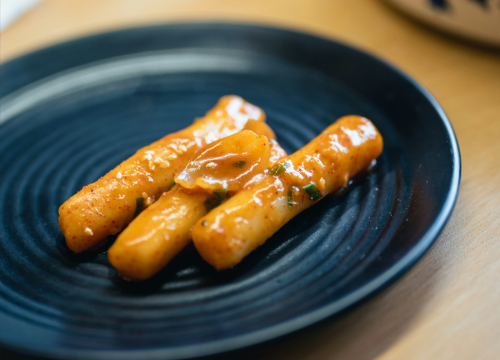 (このヤンニョムチキンは甘辛くて美味しいです。) - 떡볶이 소스가 매콤달콤해요.