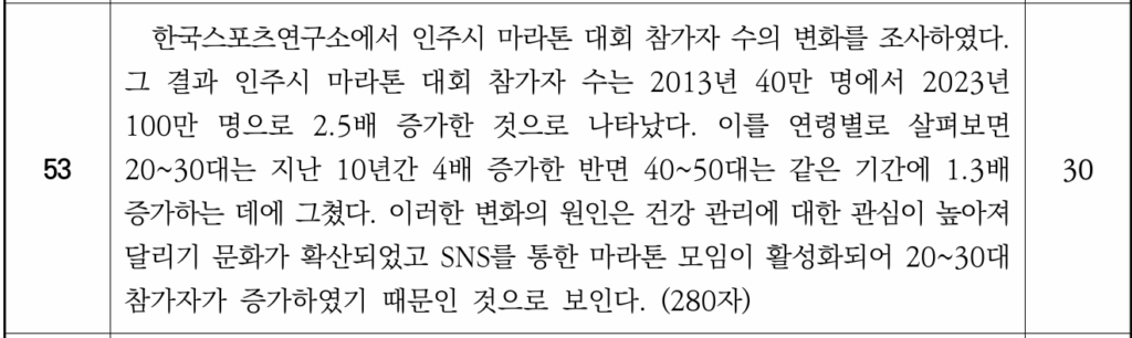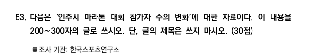 53. 次は「仁州市マラソン大会参加者数の変化」に関する資料である。この内容を200〜300字で書きなさい。ただし、タイトルは書かないこと。