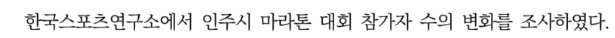 韓国スポーツ研究所では、仁州市のマラソン大会参加者数の変化について調査した。