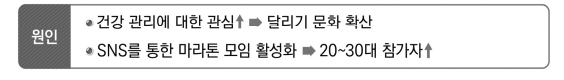 このような変化の原因は、健康管理への関心が高まりランニング文化が広がったこと、そしてSNSを通じたマラソンの集まりが活性化し、20〜30代の参加者が増加したためと考えられる。