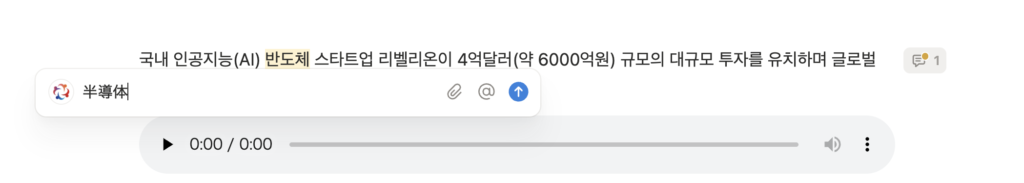 例えば、반도체 という単語がわからない場合、コメント機能を活用しましょう。