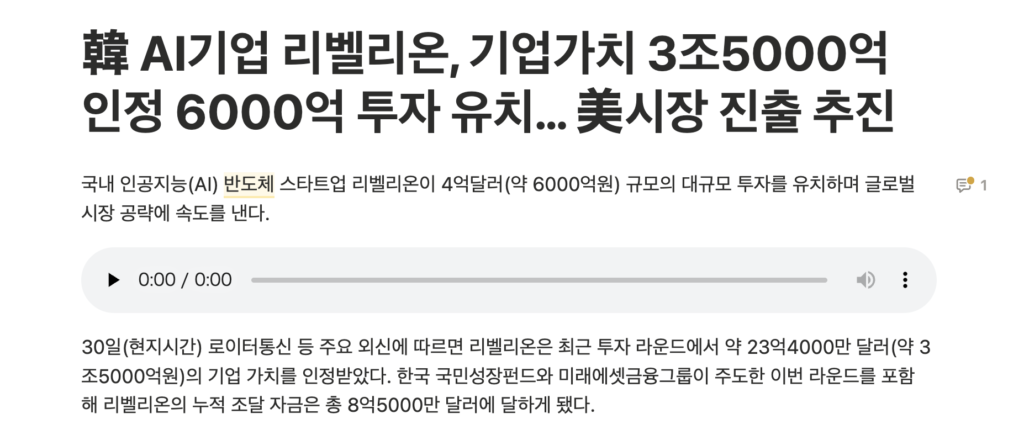 引用: Naverニュース(韓 AI기업 리벨리온, 기업가치 3조5000억 인정 6000억 투자 유치… 美시장 진출 추진)