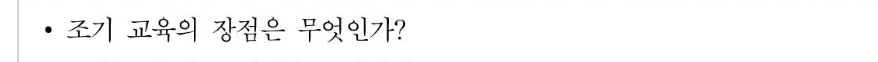 以下のように、早期教育の長所を箇条書きで2、3個書き出してみましょう。